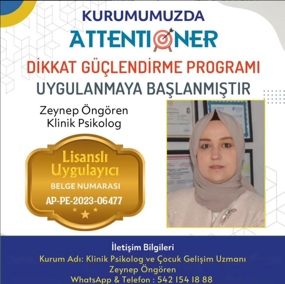 Kurumumuzda Attentioner Dikkat Güçlendirme Programı uygulanmaya başlanmıştır.